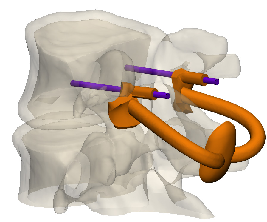 Supporto per la realizzazione di procedure custom made per trattamenti di neurochirurgia: teche craniche su misura, da realizzare in PEEK o titanioguide chirurgiche per il posizionamento di viti in ambito spinale.